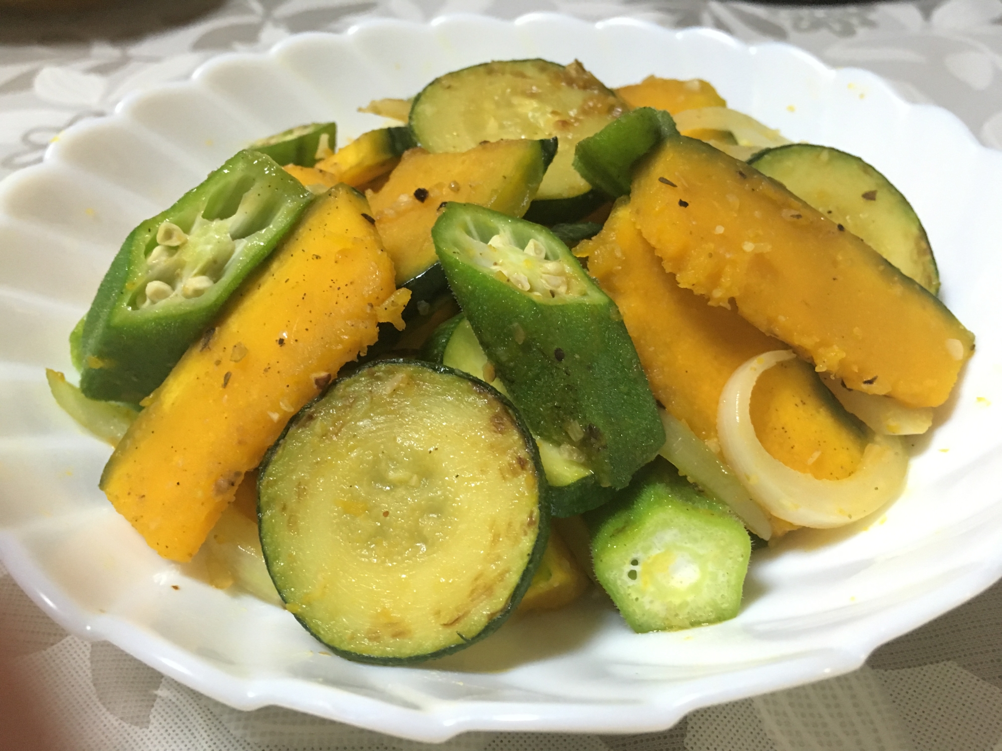 豚肉と夏野菜の塩バターチャンプルー かぼちゃサラダ オクラの即席スープ 2人分 だいどこログ 生協パルシステムのレシピサイト